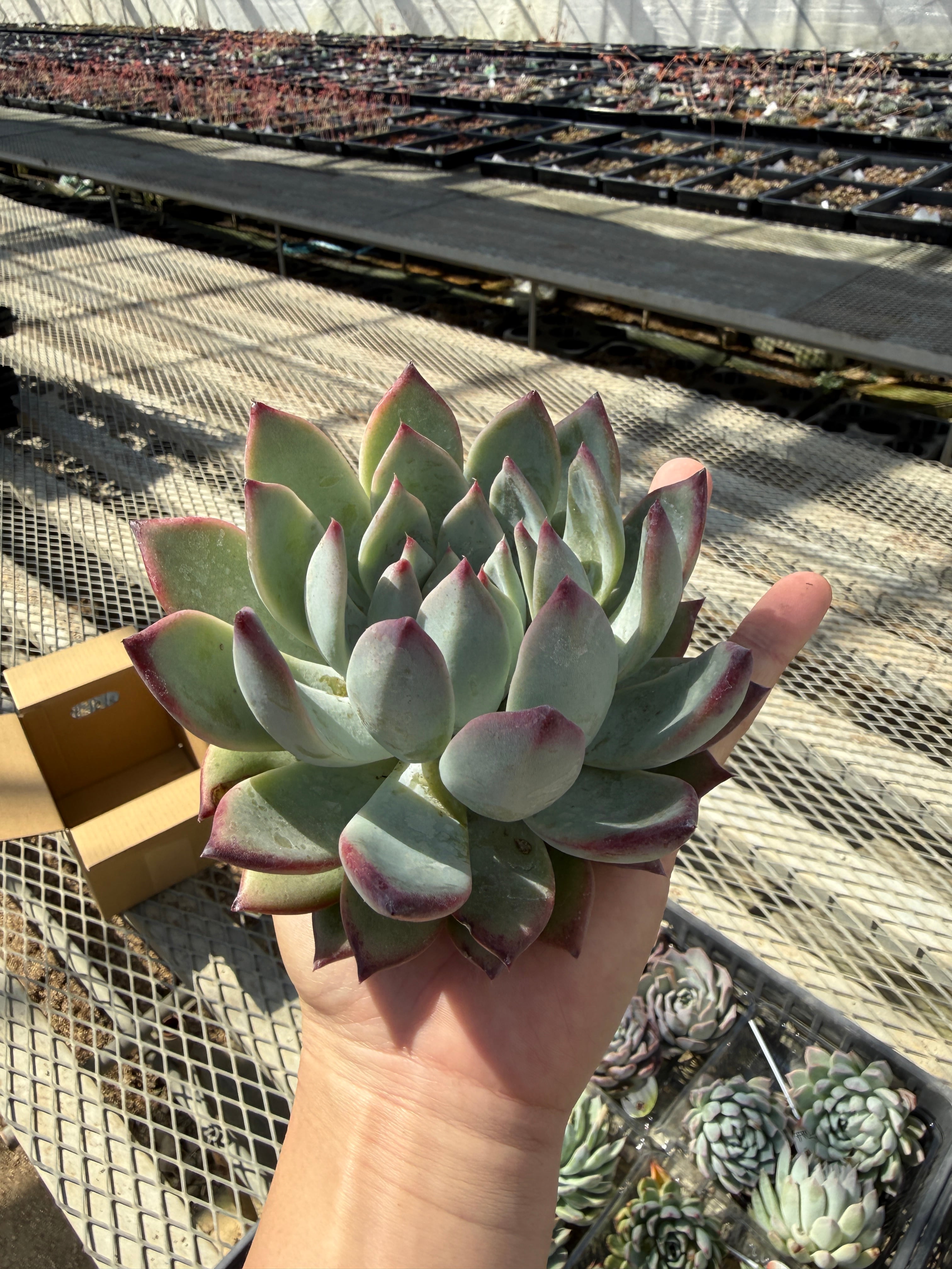 葉挿しから育てた国産エケベリアのカット苗お任せセットです 注文が入ってからカットして発送します。 発送上60サイズのダンボールに目一杯詰め込みます サイズにもよりますが1箱8個〜10個ほどデカベリア入ってます 名札はありませんのでご了承ください 品種指定は出来ません